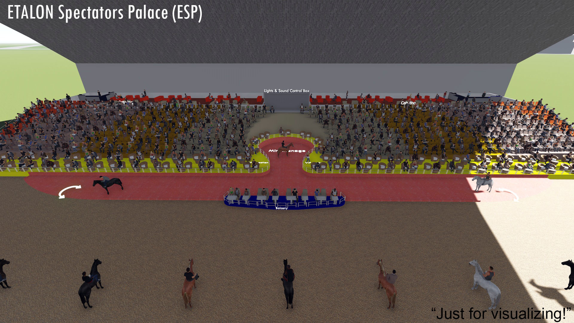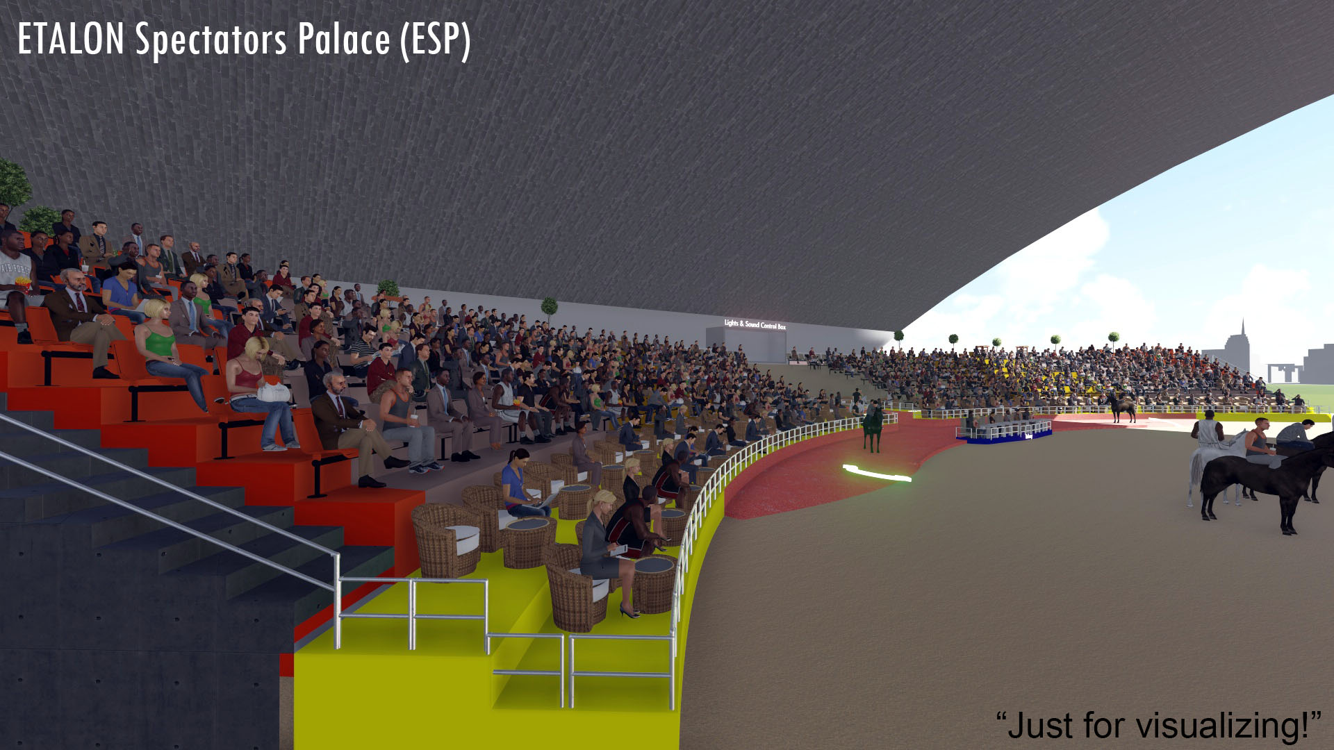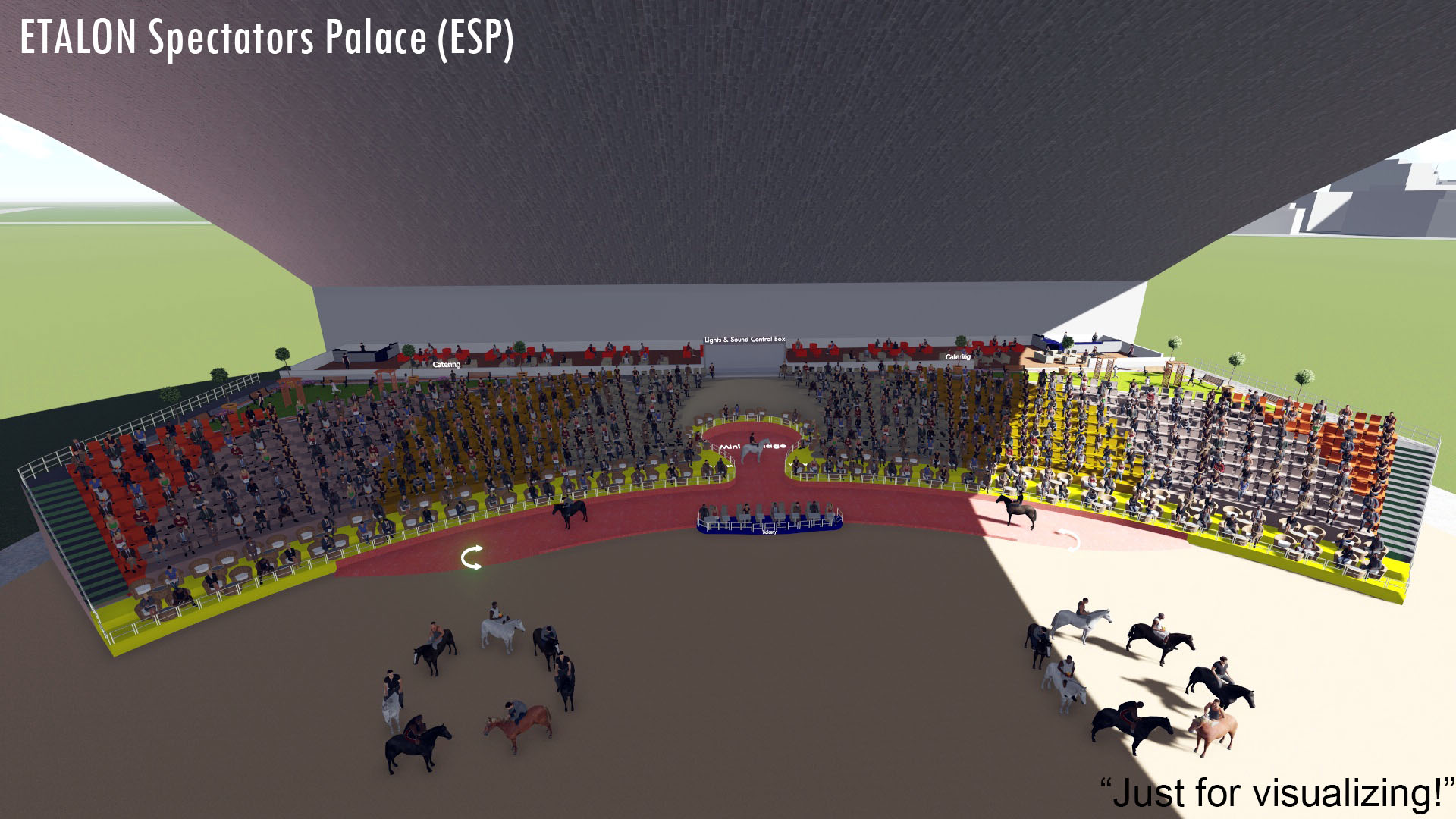 Innover est aussi une tradition pour nous. Pour abriter le spectacle, nous avons créé le moderne ETALON Palais des Spectateurs (ESP). Cette nouvelle construction de pointe donne au public la sensation d'être partie intégrante du show. De plus, ESP a une capacité d'accueil de 2000-5000 visiteurs, y compris 200-500 invités VIP et 15-25 invités royaux dans une section séparée en terrasse.