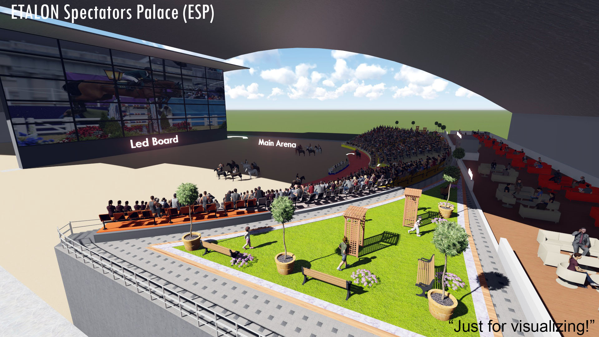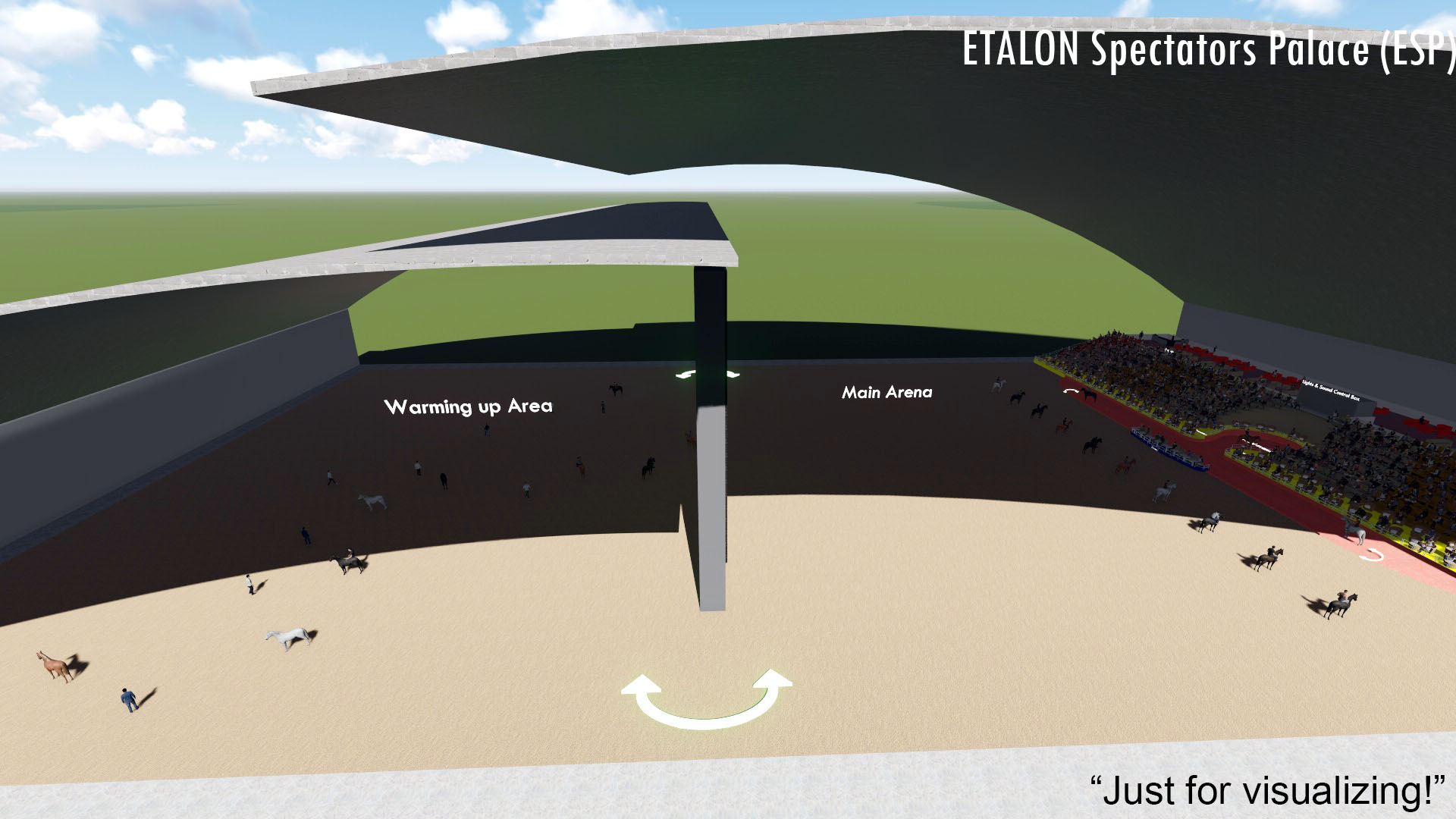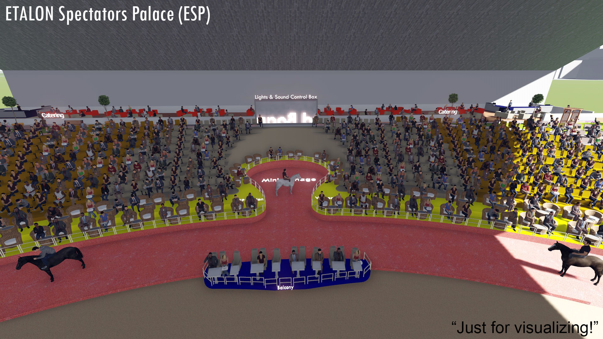 Innover est aussi une tradition pour nous. Pour abriter le spectacle, nous avons créé le moderne ETALON Palais des Spectateurs (ESP). Cette nouvelle construction de pointe donne au public la sensation d'être partie intégrante du show. De plus, ESP a une capacité d'accueil de 2000-5000 visiteurs, y compris 200-500 invités VIP et 15-25 invités royaux dans une section séparée en terrasse.
